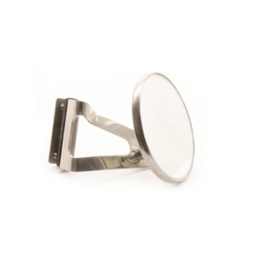 Clamp On Peep Mirror 3″ For Drivers Side Only. Clamp on classic style peep mirror to be used on the drivers side only made from polished stainless steel 76 mm diameter clamps on up to 5mm convex lens suitable for classic and kit cars.
