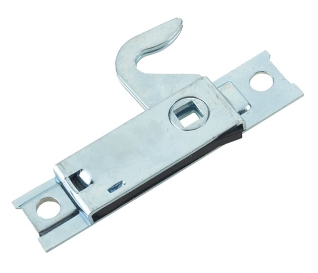 A 112.5mm left hand budget lock with a zinc plated pressed steel casing and hooked tongue